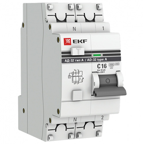 Выключатель автоматический дифференциального тока АД-32 1P+N 16А / 10мА (характеристика C, тип A) 4,5кА EKF PROxima